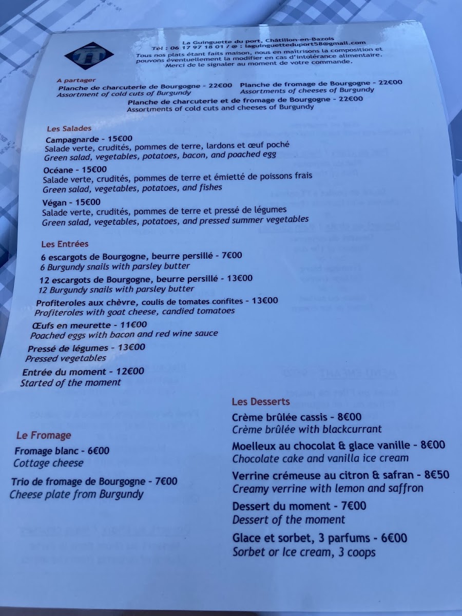 If you’re cruising the canals, join the locals who recommend La Guinguette du Port for its superb quality and value. Just be sure to book ahead during peak season!